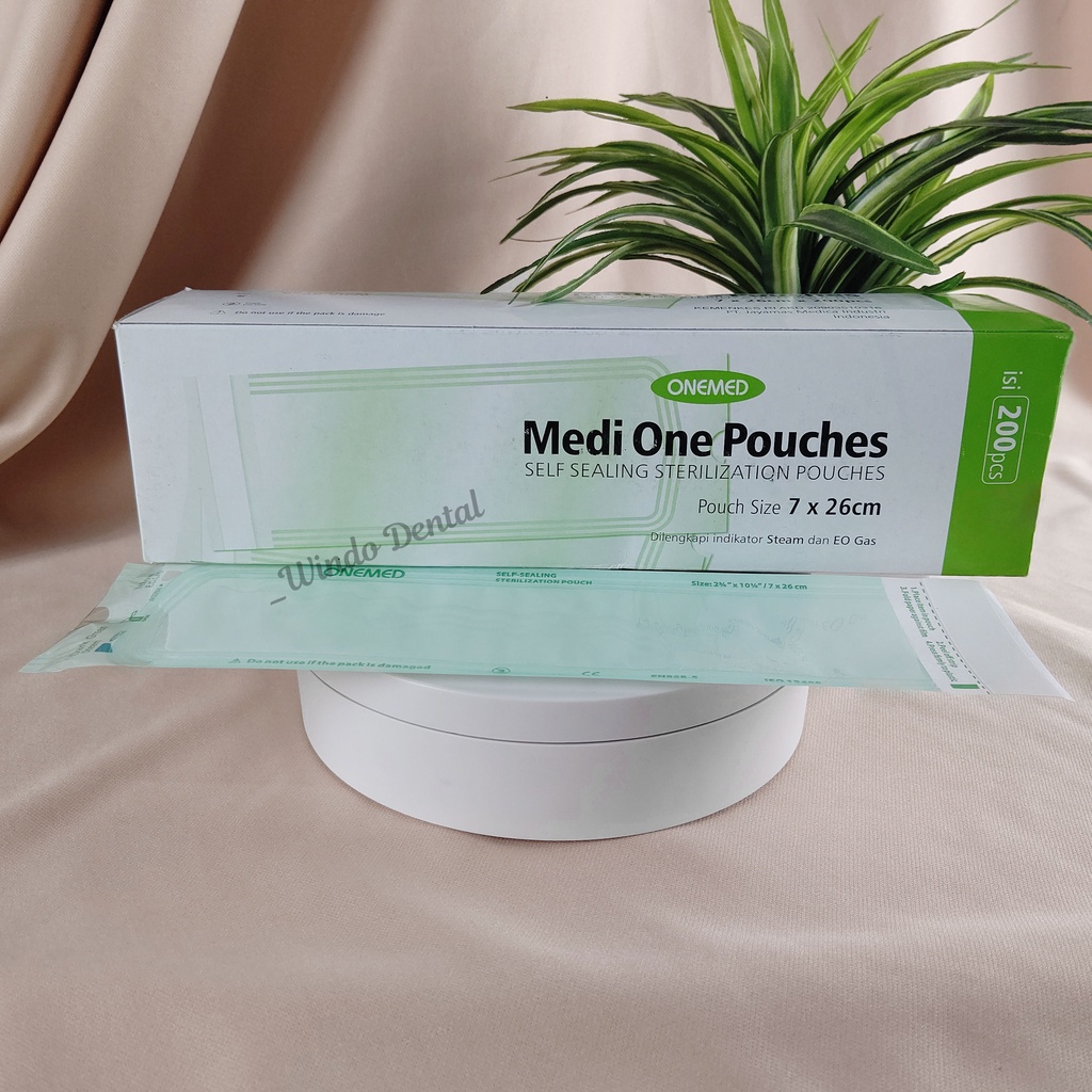 Jual DENTAL MEDI ONE POUCHES STERIL / MEDIPOUCH / STERILIZATION POUCH Medipack Self-Sealing Sterilization Pouch medipack autoclave sterilisation pouches are self sealing with indicator strip that. medipack self sealing autoclave pouches are easy to use. Secure seal for protection on the possible tearing of sharp instruments. The pouches do not hinder the penetration of steam sterilisation. quick and efficient sealing without professional equipment. Medipack Self-Sealing Sterilization Pouch.